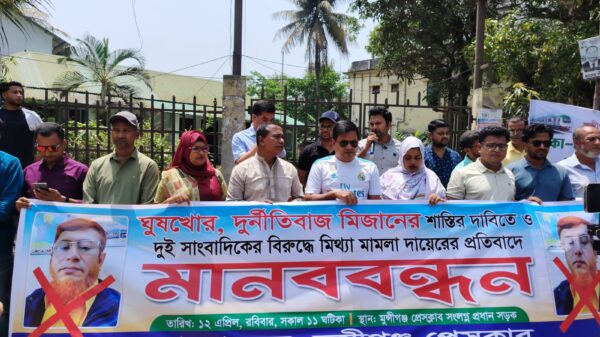 মুন্সীগঞ্জে সাংবাদিকের বিরুদ্ধে মিথ্যা মামলার প্রতিবাদে অভিযুক্ত ব্যক্তির প্রত্যাহারসহ সাত দিনের আলটিমেটাম