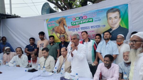 আসন্ন ৬ষ্ঠ উপজেলা পরিষদ নির্বাচনে নারায়নগঞ্জ সোনারগাঁয়ে চেয়ারম্যান প্রার্থী মাহফুজুর রহমান কালামকে ঘোড়া প্রতিককে বিজয়ী করতে নির্বাচনী পথ সভা অনুষ্ঠিত হয়েছে। শনিবার বিকেলে জামপুর ইউনিয়নের সর্বস্তরের জনগনের আয়োজনে তালতলা চৌরাস্তা