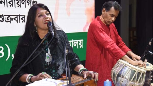ঢাকা বিশ্ববিদ্যালয়ের নারায়ণগঞ্জ এর ছাত্র-ছাত্রীদের সংগঠন ‘আনন্দ’র নবীন বরণ ও সাংস্কৃতিক সন্ধ্যায় গান গেয়ে মন মাতিয়েছেন রবীন্দ্র সংগীত শিল্পী নেলী সাহা। শুক্রবার (২৬ জানুয়ারি) জেলা শিল্পকলা একাডেমীতে এ নবীন বরণ