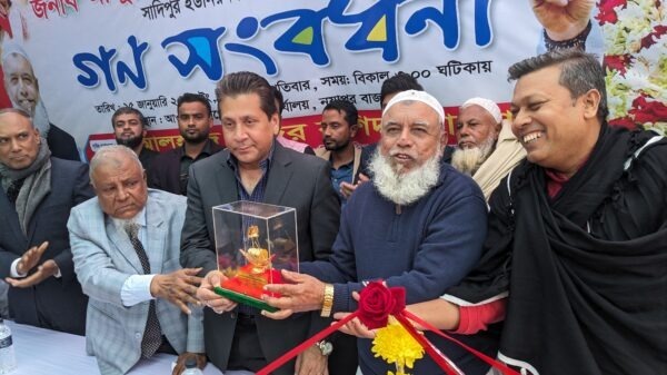সোনারগাঁও উপজেলা সাদিপুর ইউনিয়ন আওয়ামী লীগ ও সহযোগী সংগঠনের পক্ষ থেকে নারায়ণগঞ্জ-৩ আসনের নবনির্বাচিত সংসদ সদস্য আব্দুল্লাহ আল কায়সার হাসনাতকে ফুল দিয়ে শুভেচ্ছা জানানো হয়েছে। বৃহস্পতিবার বিকালে সাদিপুর