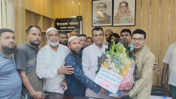 নারায়ণগঞ্জ সোনারগাঁ উপজেলা পরিষদের নব-নির্বাচিত চেয়ারম্যান আলহাজ্ব মাহফুজুর রহমান কালাম কে ফুলেল শুভেচ্ছা ও অভিনন্দন জানিয়েছেন সোনারগাঁ উপজেলা মটর চালক লীগের নেতা কর্মীরা। এ সময় উপস্থিত ছিলেন সোনারগাঁ উপজেলা মটর চালক
