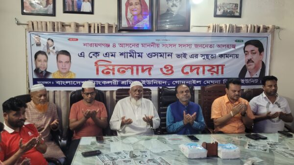 নারায়ণগঞ্জ প্রতিনিধি : বাংলাদেশ ট্যাংকলরী শ্রমিক ইউনিয়ন রেজি: বি-১৭৫৩ গোদনাইল মেঘনা ডিপো শাখার উদ্যোগে আধুনিক নারায়ণগঞ্জের সপ্নদ্রষ্টা নারায়ণগঞ্জ-৪ আসনের সংসদ সদস্য আলহাজ্ব একেএম শামীম ওসমানের সুস্বাস্থ্য ও দীর্ঘায়ু কামনায় দোয়া