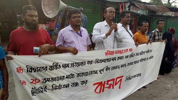 নিত্যপণ্যের দাম কমানো, বিদ্যুতের বর্ধিত মূল্য প্রত্যাহারসহ বিভিন্ন দাবিতে মানববন্ধন করেছে বাংলাদেশের সমাজতান্ত্রিক দল-বাসদ সিদ্ধিরগঞ্জ থানা শাখার নেতৃবৃন্দ। বুধবার (২৭ মার্চ) বিকাল ৩টায় সিদ্ধিরগঞ্জের চৌধুরীবাড়ি বাসস্ট্যান্ডে এ মানববন্ধন অনুষ্ঠিত হয়।