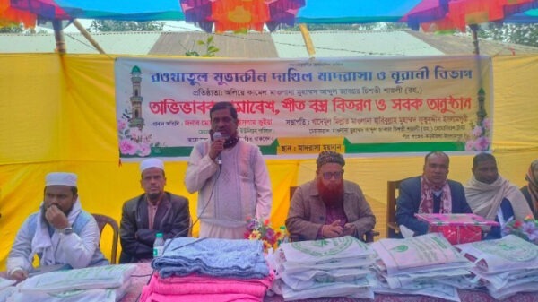 নারায়ণগঞ্জের আড়াইহাজারে রওজাতুল মুত্তাকীন দাখিল মাদ্রাসা ও নূরানী বিভাগের উদ্যোগে অভিভাবক সমাবেশ, শীতবস্ত্র বিতরণ, কৃতি শিক্ষার্থীদের সংবর্ধনা ও সবক অনুষ্ঠান অনুষ্ঠিত হয়। বুধবার (১৭ জানুয়ারি) দুপুরে উপজেলার কড়ইতলা ইসলামপুর মাদ্রাসা