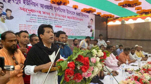 নারায়ণগঞ্জ মহানগর যুবলীগের সভাপতি শাহাদাৎ হোসেন ভূঁইয়া সাজনু বলেছেন, শেখ হাসিনা এ জাতিকে শিক্ষিত করতে সোনার বাংলা গড়তে কাজ করছেন। আজ বাংলাদেশ মধ্যম আয়ের দেশে উপনীত হয়েছে। আপনারা তার জন্য