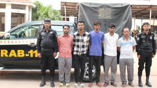 নারায়ণগঞ্জের ফতুল্লায় দেশীয় অস্ত্রে সজ্জিত হয়ে ডাকাতির প্রস্তুতিকালে আন্তঃ জেলা ডাকাত দলের সর্দারসহ কুখ্যাত ০৫ ডাকাতকে গ্রেপ্তার করেছে র্যাপিড এ্যাকশন ব্যাটালিয়ন। শুক্রবার (৮ মার্চ) এক সংবাদ বিজ্ঞপ্তিতে এ তথ্য জানান