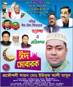 বছর ঘুরে আবারো দীর্ঘ ১ মাস সিয়াম সাধনার পর আমাদের মাঝে উপস্থিত হয়েছে পবিত্র ঈদুল ফিতর। ঈদ আমাদের শেখায় বিভেদ ভুলে একে অন্যের সুখ দুঃখ ভাগাভাগি করে ভ্রাতৃত্বের বন্ধনে আবদ্ধ করা। ঈদ আমাদের মাঝে আসে আনন্দ নিয়ে, এই আনন্দ ছড়িয়ে পড়ুক সকলের মাঝে সেই প্রত্যাশায় সবাইকে জানাই পবিত্র ঈদুল ফিতরের শুভেচ্ছা…ঈদ মুবারক।